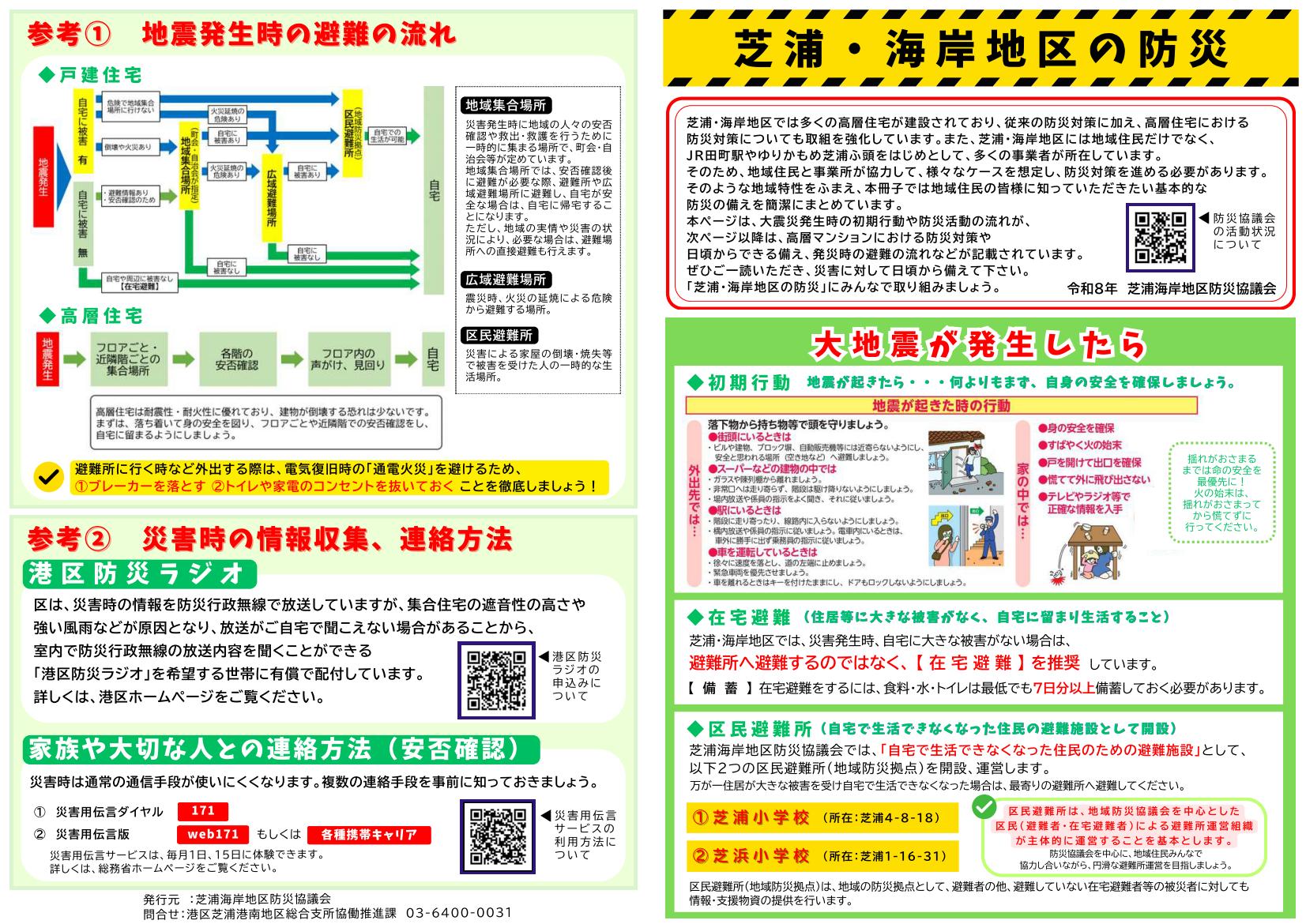 ・芝浦・海岸地区の防災マニュアル概要版(A3用紙1枚を二つ折り、4ページ)について: