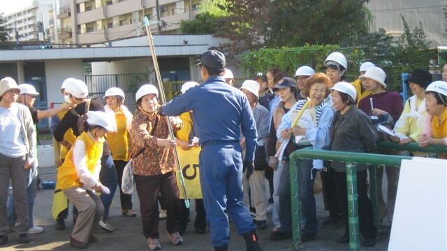 訓練は毎年行われているが参加者の高齢化が進み(?)、老人力を発揮するケースが多くなるのではないか。しかし、アイランドの高層住宅に住む新しい、若い世代の参加も必要ではないかとも思う。これらは次年度の課題としたい。
